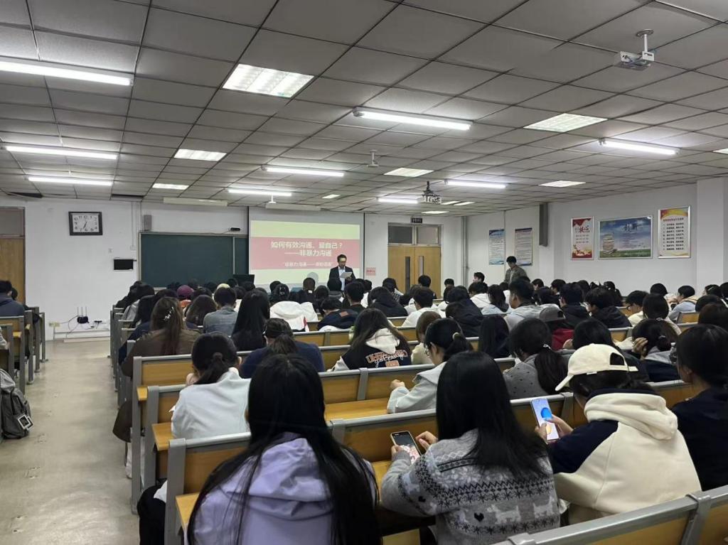 为扎实推进学生心理健康教育工作,助力学生提升自我关怀能力与人际沟通素养,10月15日下午,食品科学与制药工程学院在多媒体106教室成功举办了一场以“如何有效沟通,爱自己——非暴力沟通”为主题的心理健康讲座。讲座由学院党委副书记黄成亮主持,特邀枣庄市精神卫生中心儿童心理发展训练中心副主任黄秀云担任主讲。学院学生会全体、各班级心理委员与生活委员150余人参加了本次活动。
