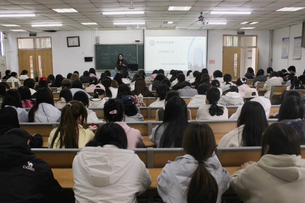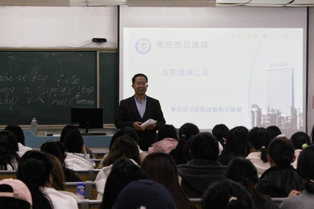 为切实关注大学生身心健康,普及皮肤健康知识,引导学子树立科学护肤观念,11月3日下午,食品科学与制药工程学院在多媒体楼106教室举办了一场以“皮肤健康之美”为主题的专题讲座。本次讲座特别邀请了枣庄市立医院皮肤科副主任医师王甜甜博士担任主讲嘉宾,吸引了近百名学生积极参与。此次讲座由学院党委副书记黄成亮主持。