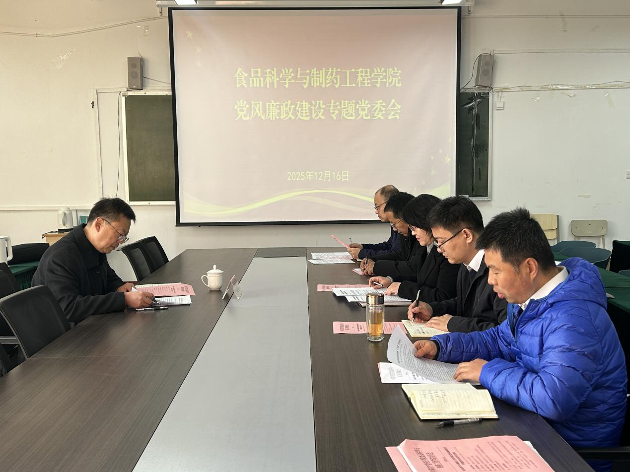 为深入贯彻落实全面从严治党要求,压紧压实党风廉政建设责任,12月16日下午,食品科学与制药工程学院召开党风廉政建设工作专题党委会议。校纪委委员、总会计师轩庆明到会指导。会议由学院党委书记华莹主持。