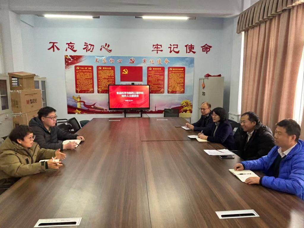 12月19日上午,食品科学与制药工程学院在文科楼228会议室召开党外人士座谈会。学院党委书记华莹出席并讲话,党委副书记黄成亮主持会议,部分党外教师代表参加。