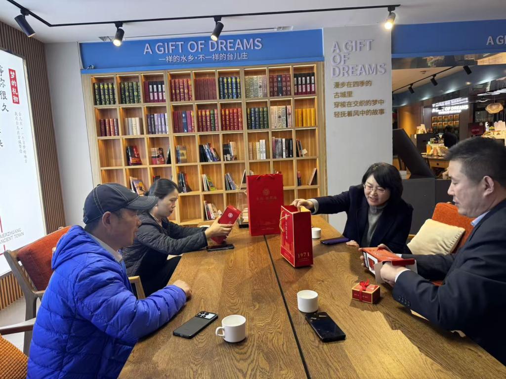 在文创店内,学院师生依次观摩了冰箱贴、明信片、钥匙扣、文创笔记本、铜盘等经典文创产品,并重点了解了温变马克杯、八音盒、文创雪糕等创新产品的设计思路与制作流程。工作人员系统介绍了文创产品从创意萌发到成品落地的全过程,分享了如何依托地域文化打造具有市场价值的文创产品的实践经验。参观过程中,师生认真观看、积极思考,学院领导、辅导员与文创店工作人员就创意融合、工艺技术、市场对接等问题进行了深入交流。华莹书记认为,台儿庄古城文创产品实现传统文化与现代创意有机结合的模式,为学院食品、制药类文创产品的研发提供了有益参考。学院后续将积极转化本次学习成果,结合专业特点,开发兼具科学内涵与创意特色的文创作品。