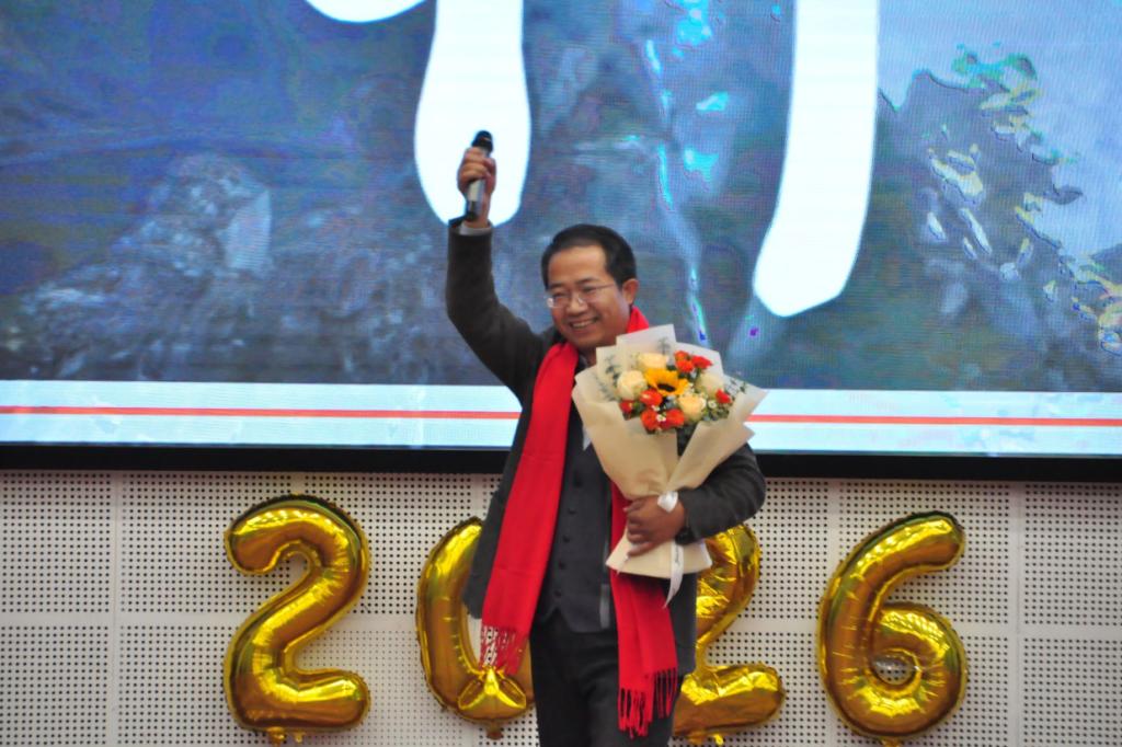 欢乐的时光虽已接近尾声,但温情与感动久久不散。晚会在舞蹈《相亲相爱》的欢快舞步中渐入高潮,随后《难忘今宵》的熟悉旋律响起,全体师生共同合唱,歌声悠扬、情谊浓厚。全体演职人员登台致谢,台下掌声经久不息,师生同台挥手致意的温馨画面,成为当晚最动人的风景,为此次元旦晚会画上圆满句号。