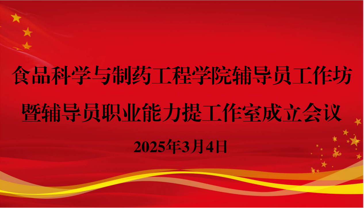 为深入贯彻落实立德树人根本任务,推进辅导员队伍专业化、职业化、专家化建设,提升学生思想政治教育工作质量,2025年3月4日,食品科学与制药工程学院辅导员职业能力提升工作室成立会议在文科楼228会议室隆重召开。学院党委副书记黄成亮、全体辅导员参加会议,会议由工作室负责人李鑫宇主持。