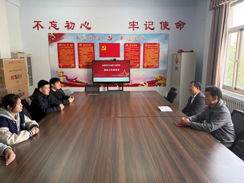4月1日,食品科学与制药工程学院在文科楼召开退役大学生士兵教育管理座谈会。学院党委副书记黄成亮、国防教育工作负责人张猛及退役大学生士兵代表参加会议。